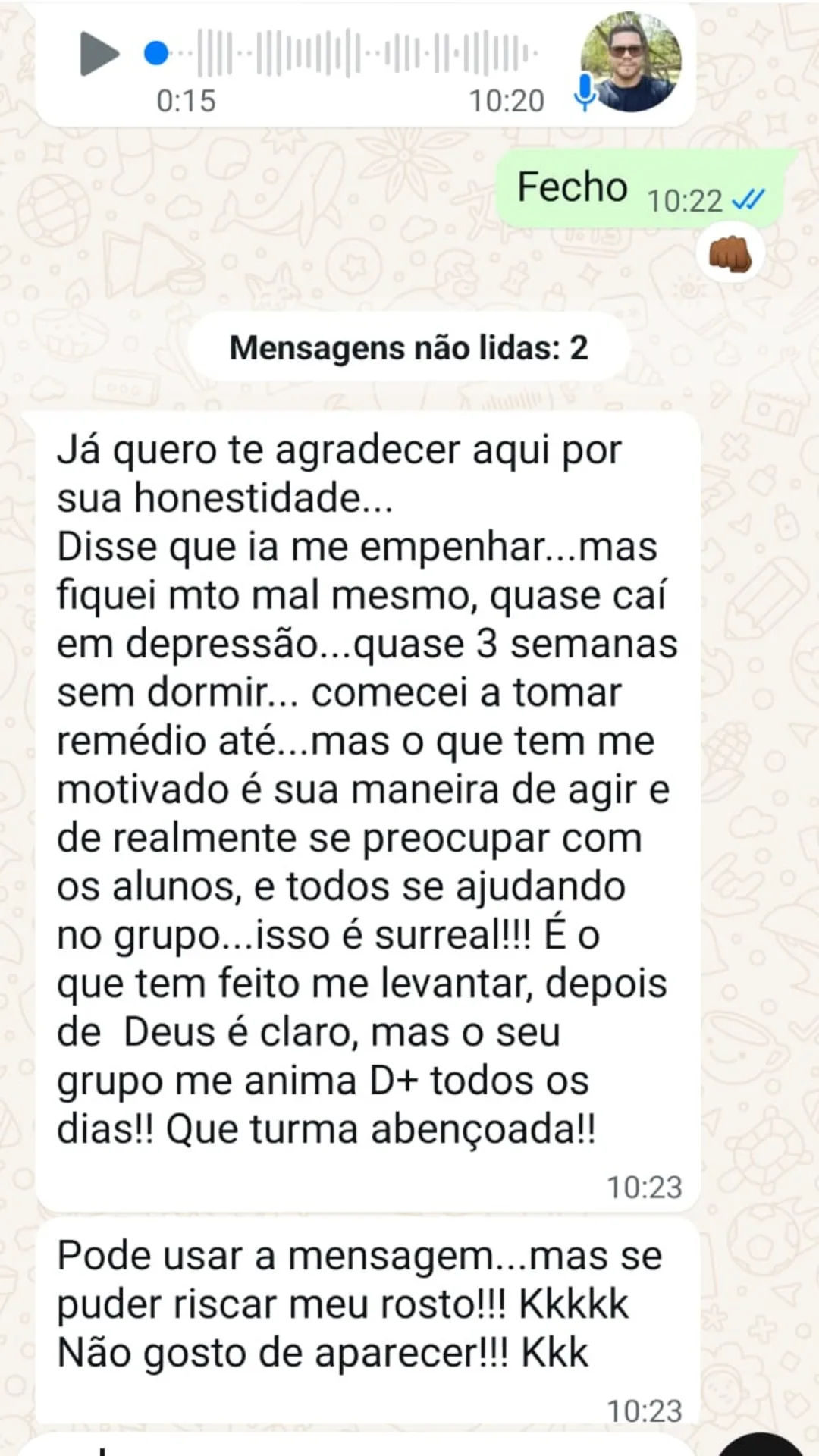 Todas as segundas-feiras, às 19h (horário de Brasília), você poderá tirar dúvidas e receber direcionamento direto no nosso grupo exclusivo do WhatsApp.